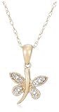 10k Yellow Gold Dragonfly Pendant with Diamond-Accent