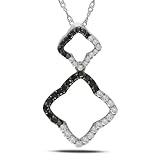 14k White Gold, Black Rhodium Plated, Black and White Diamond Pendant with Chain, (.5 cttw, GH Color, I1-I2 Clarity), 17"